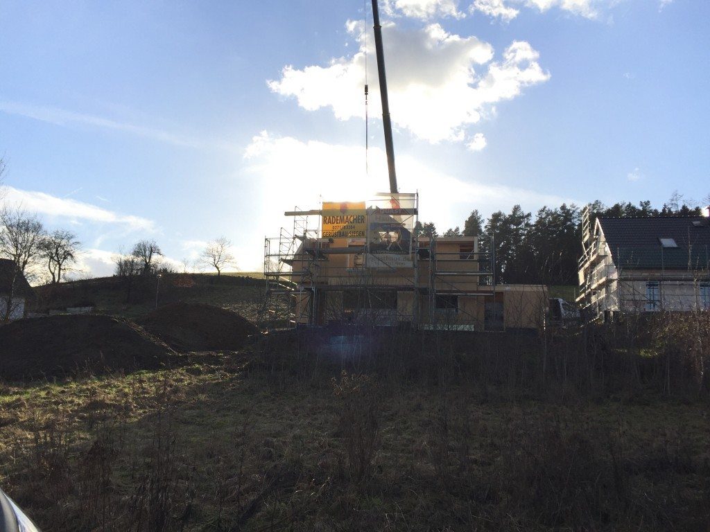 Dieses Haus ist unser erstes, aufgestelltes Haus im Jahr 2016. Und 2016 begann wie 2015 aufgehört hatte: mit gutem Wetter bei unserer Richtmontage.