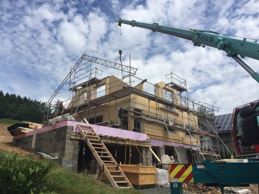 Mit dem Blick auf unser „Quasthaus des Monats Juli“, auch in Hilchenbach-Allenbach, startete unser Quastteam die Richtmontage.