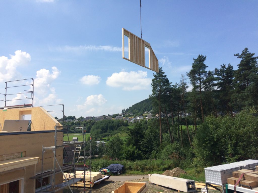 Nach fast genau zehn Jahren richten wir ein zweites Haus „In der Sengenau“ in Drolshagen. Richttag damals war der 25.7.2006 – Am vergangenen Freitag rückten wir dann mit unserem Team aus, um das zweite Quasthaus an Ort und Stelle zu montieren.