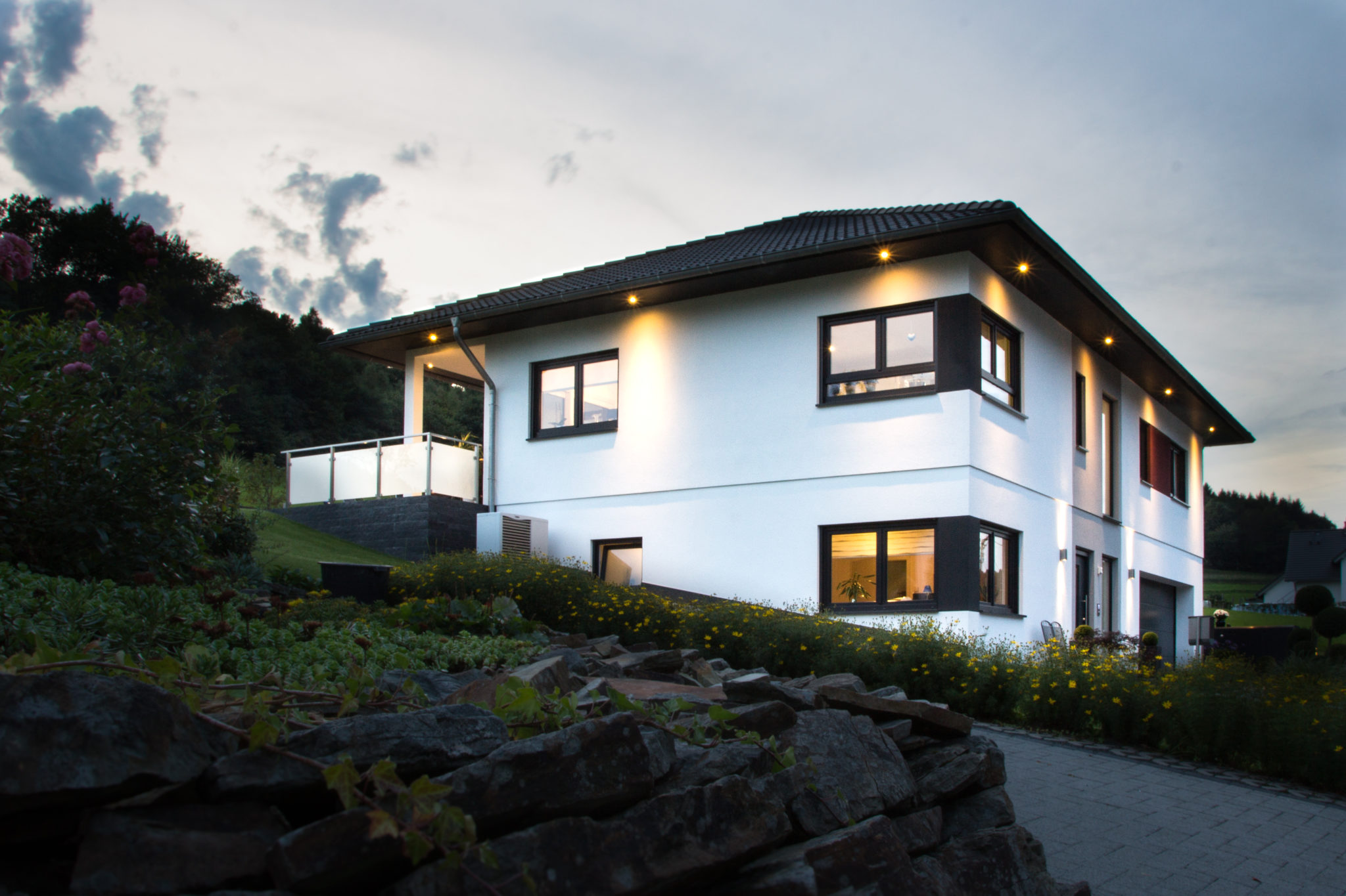 Die Energieplanung ist ein wesentlicher Teil, den wir in der Planung unserer Häuser berücksichtigen. Dieses Haus wird über eine Luftwärmepumpe mit Be- und Entlüftung sinnvoll beheizt.