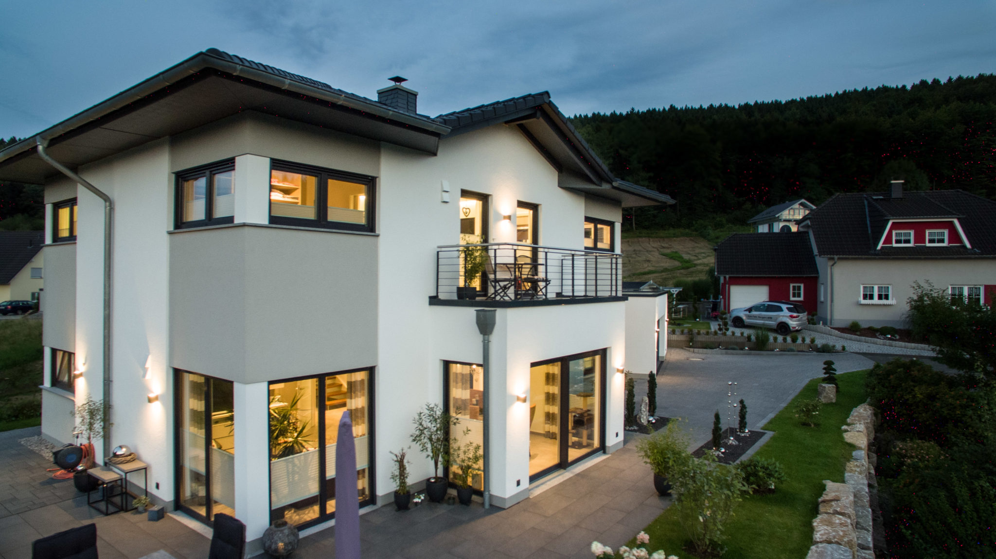 Gemeinsam mit dem Bauherrenpaar wurde bei diesem Haus sehr ins Detail gegangen: Von der Ankleide für Sie und Ihn bis hin zum Balkon, der vom Schlafzimmer aus zu begehen ist, wurden alle Wünsche umgesetzt. Der Kamin von Plewa sorgt auch im Winter für eine angenehme Wärme.